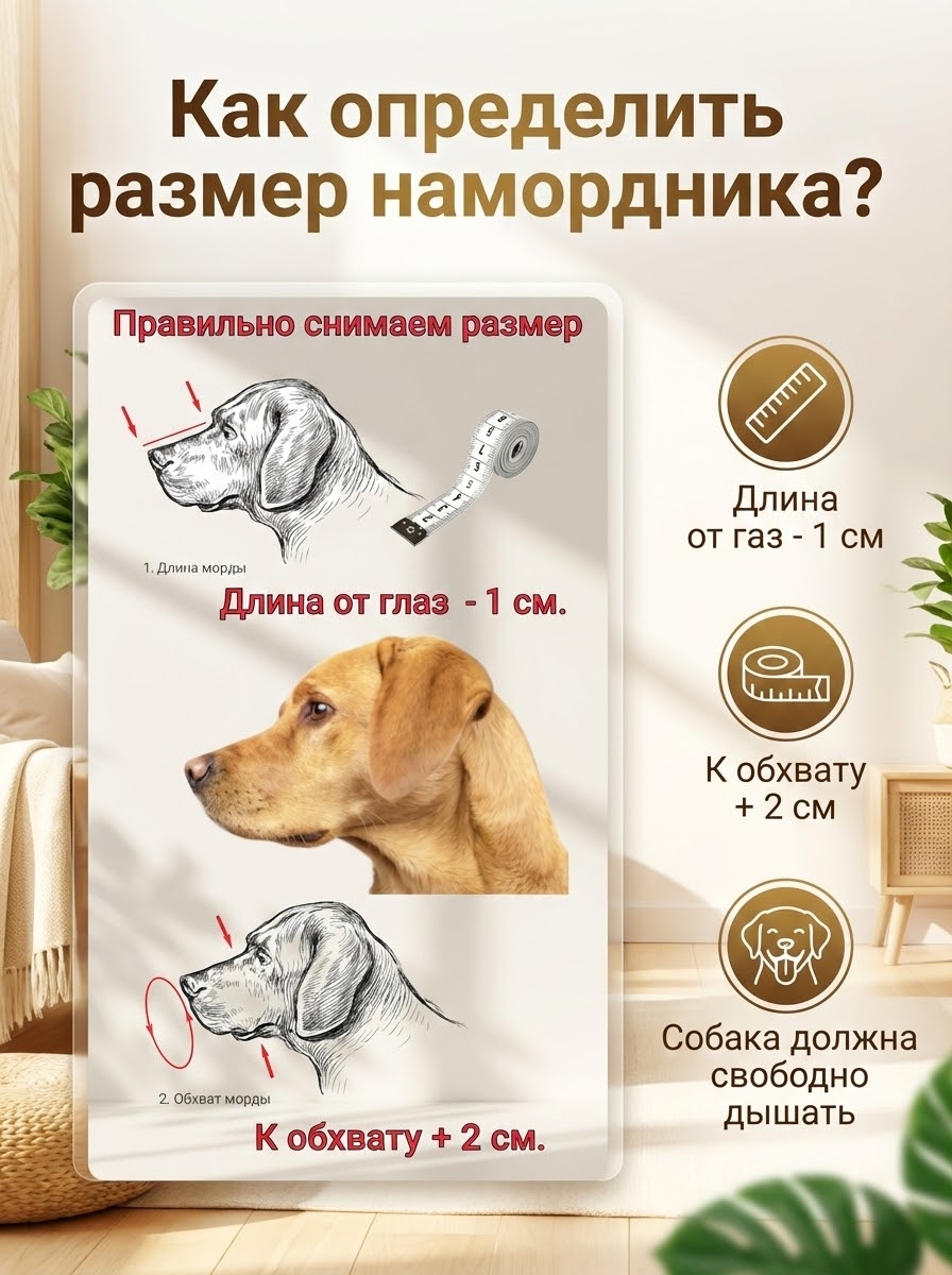 Для правильного подбора размера намордника сделайте следующие шаги: