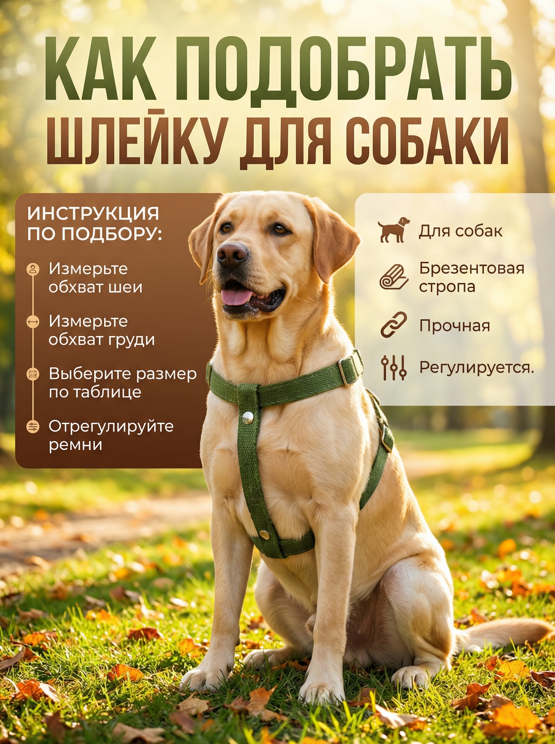 - Когда вы получите шлейку, наденьте ее на собаку. Убедитесь, что она удобно сидит и не давит на грудь или шею.